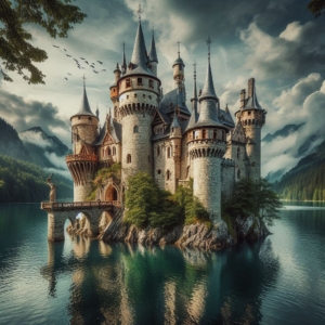Poi, eccolo. Un castello. Ma non è normale. Galleggia sull’acqua, senza sentieri e senza ponti che conducano all’ingresso. I portoni sono aperti come bocche che aspettano una risposta. Mi avvicino al lago e noto che ogni tanto emergono lembi di terra, isole passeggere che appaiono e svaniscono in un lampo.